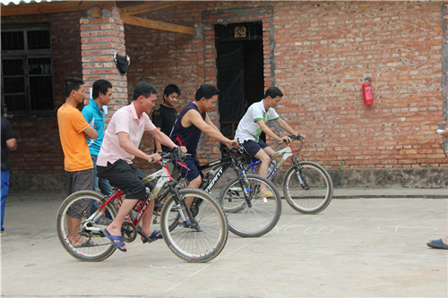 每组三人,划定始末区域,由组织者发号施令,双脚不能着地,最慢到达终点者获胜。兄弟们仿佛放慢了日常紧张的工作生活,全神贯注定住单车,以最慢速度到达终点。