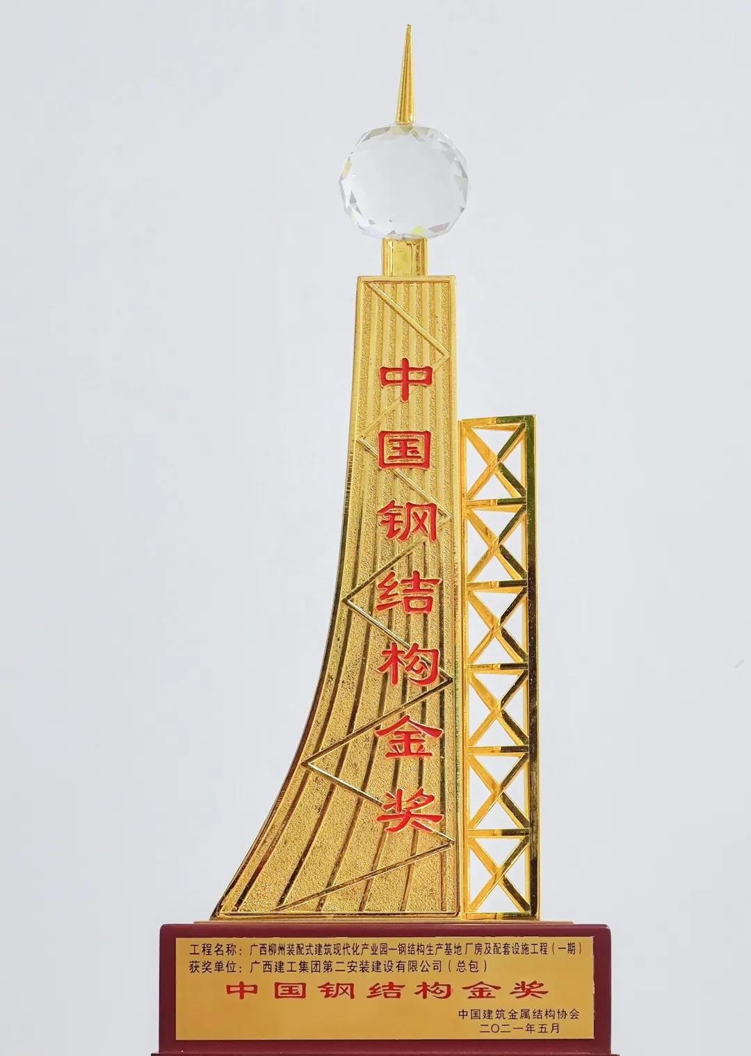 近日,2021年全国建筑钢结构行业大会在湖北武汉召开,会议表彰了“第十四届中国钢结构金奖”获奖单位和突出贡献项目经理。九分公司施工的广西柳州装配式建筑现代产业园—钢结构生产基地厂房及配套设施工程(一期),以精湛的施工技术,克服了结构复杂的难点,建造质量过硬的精品工程,获评“中国钢结构金奖”。截至目前,公司共获评中国钢结构金奖2项,均为九分公司施工的项目。